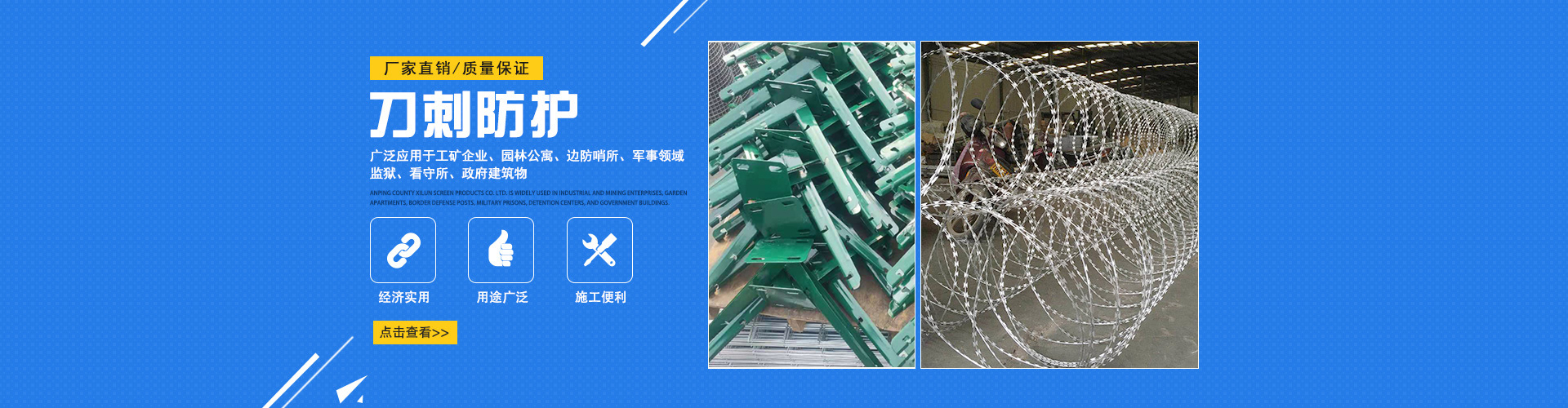 刀片刺繩?是一種新型防護網產品,具有生產工藝復雜、防護效果好、施工方便等優點。如果你想知道,請看以下內容。